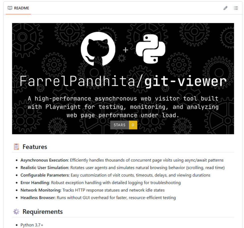 git-viewer is a lightweight but powerful async web visitor that can simulate thousands of page visits with minimal overhead. Here's what makes it stand out: